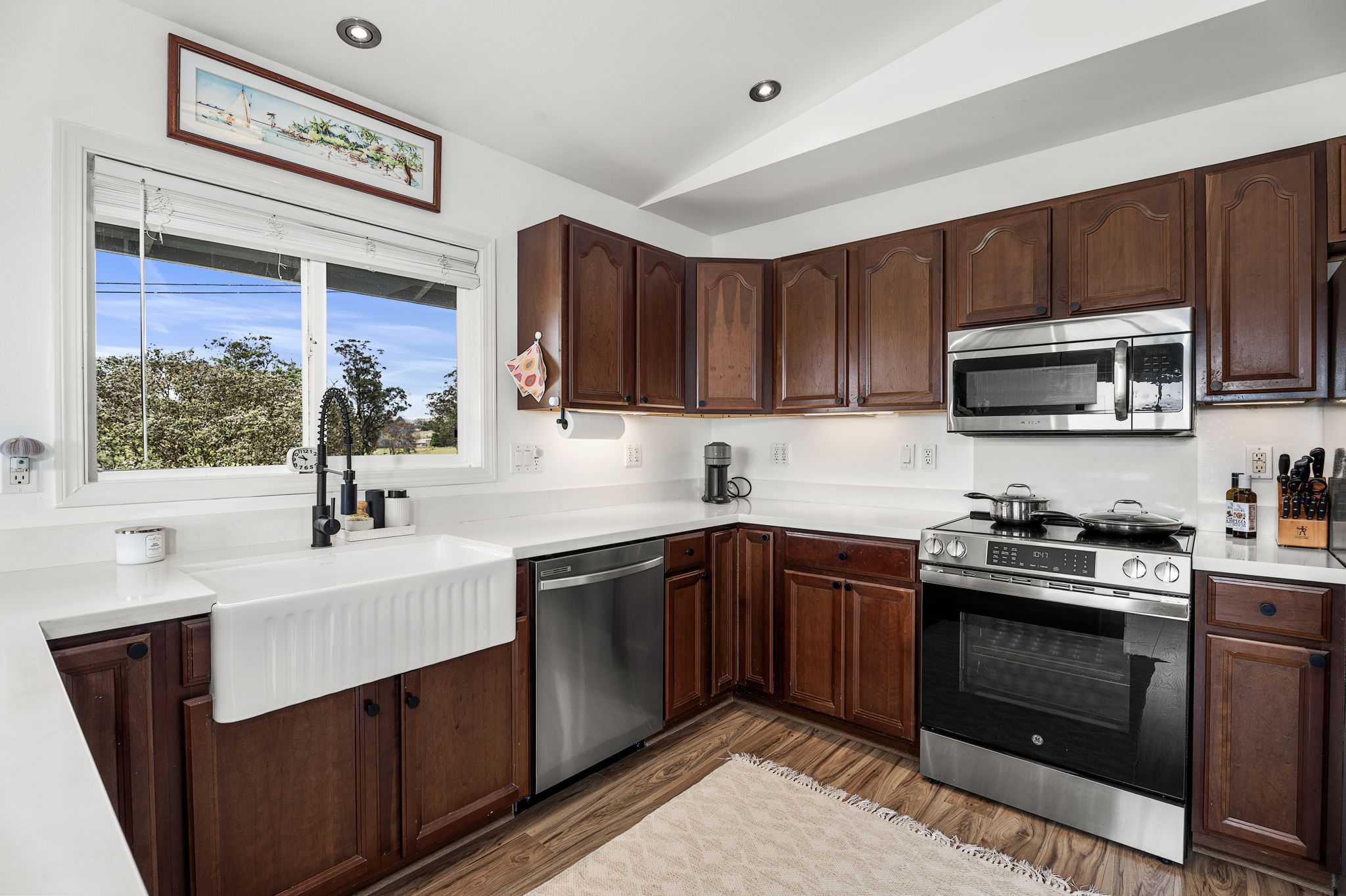 Perched in upcountry Waimea with sweeping views of Mauna Kea, this residence blends refined comfort with modern efficiency. The upper level offers 3 spacious bedrooms and 2 thoughtfully appointed bathrooms, while the lower level provides a private 1 bedroom, 1 bath suite with its own living area and separate entrance--ideal for guests or extended family.